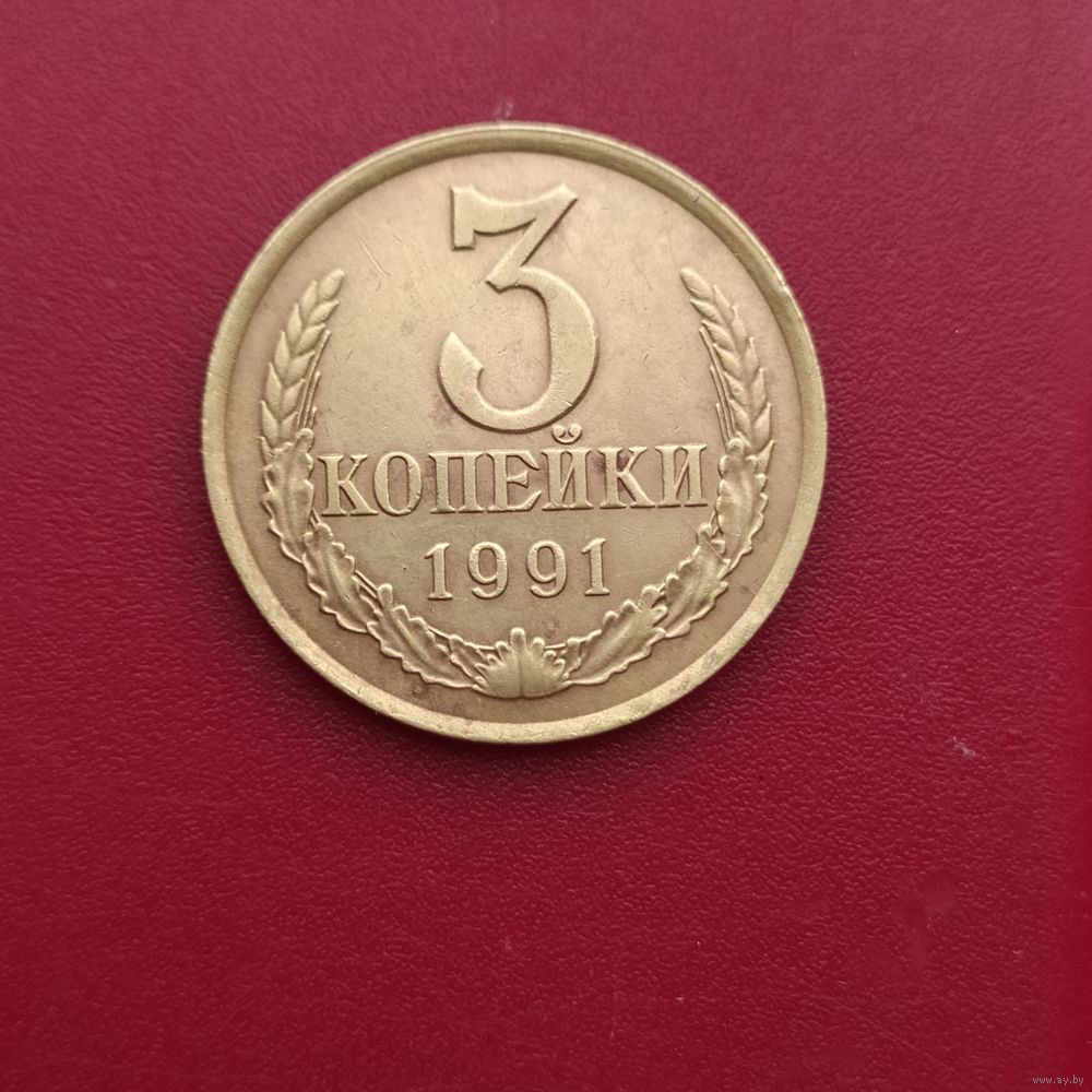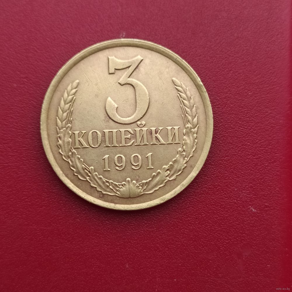 Монета 3 коп.1991г./"Л"- мд/, нечастая, оригинал, сохран, см.фото, спасибо.