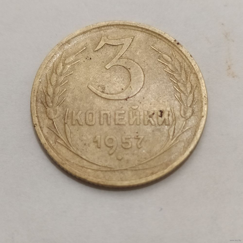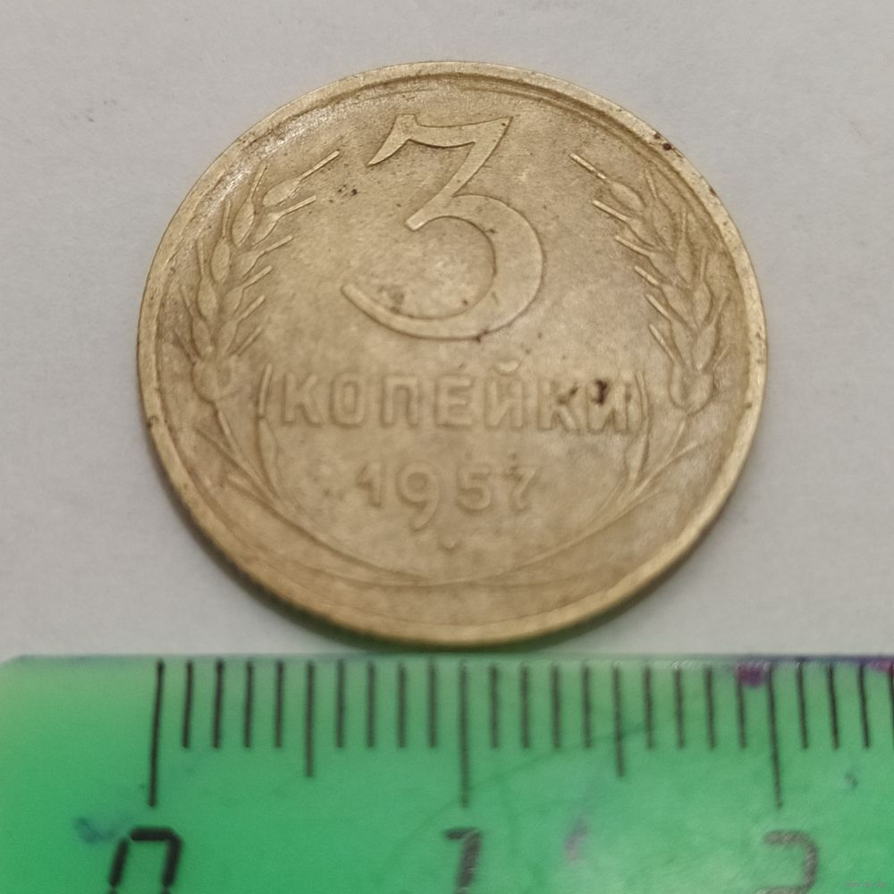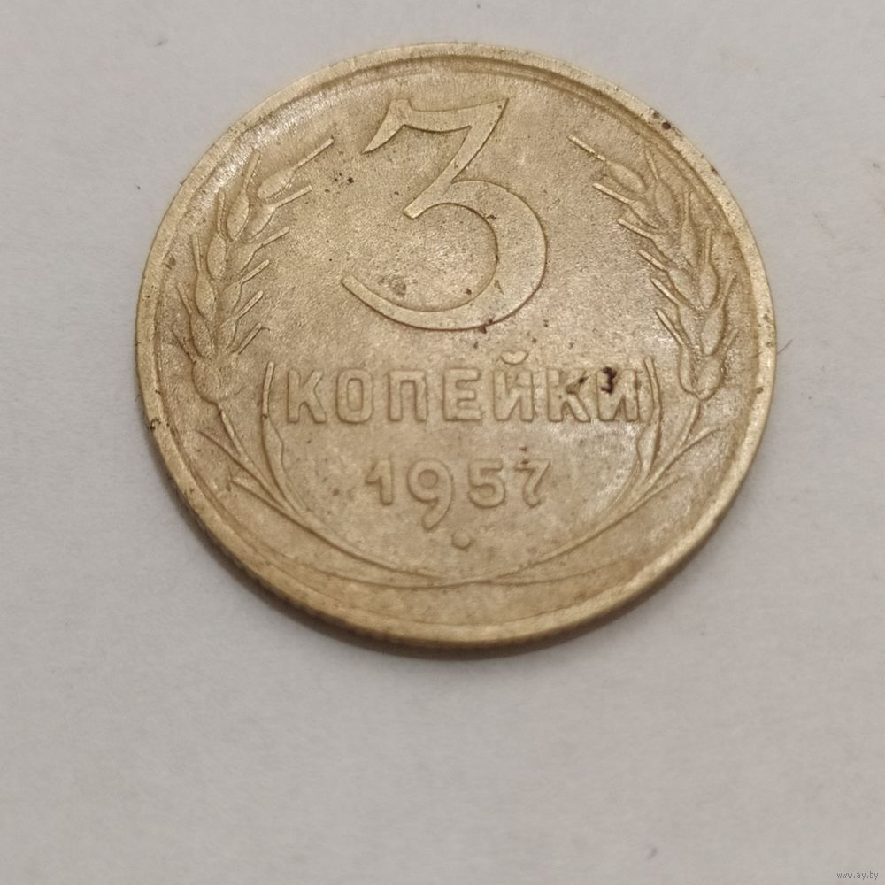 Монета 3 коп.ссср 1957г., герб 15лент, разновидность N2, в сохране