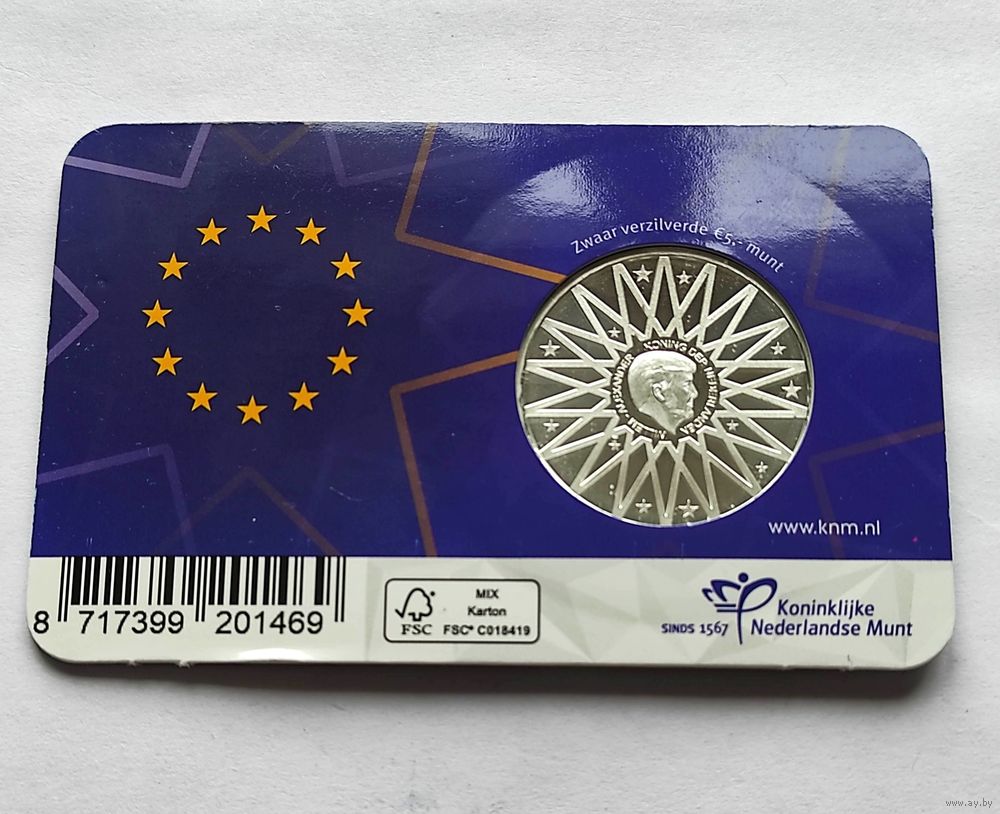 На аверсе король Виллем-Александр находится в центре потолочной конструкции культового зала здания. Двенадцать звезд символизируют 12 первоначальных государств-членов. На оборотной стороне изображены двенадцать коронных булавок, которые вместе образуют фасад храма с тремя опорами, символизирующими три столпа договора. На обратной стороне 27 звезд: в настоящее время в ЕС насчитывается 27 государств-членов.