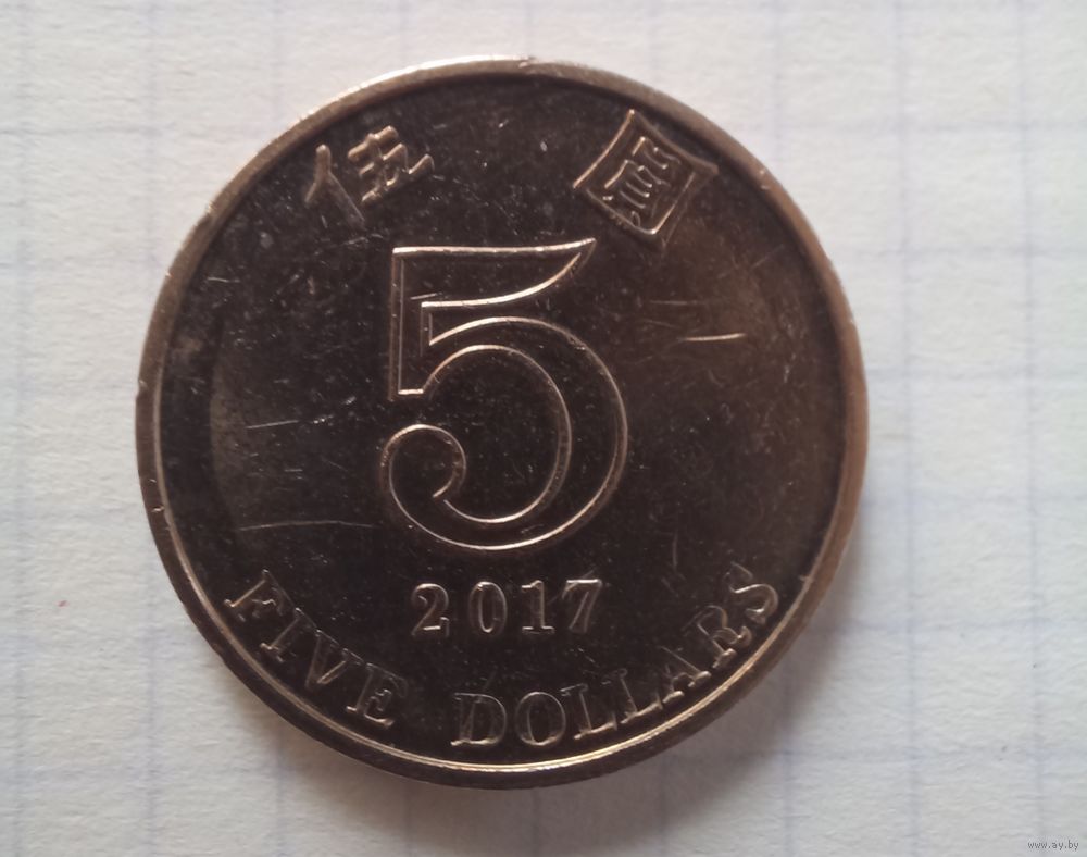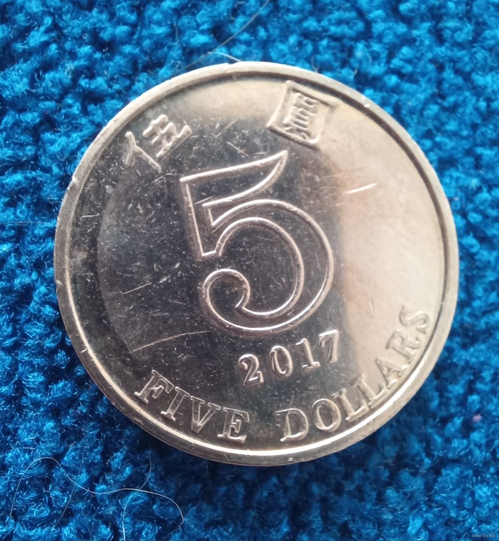 Монета Гонконг. 5 долларов. Интересный дизайн. Дефектов не обнаружил. Следы хождения.
