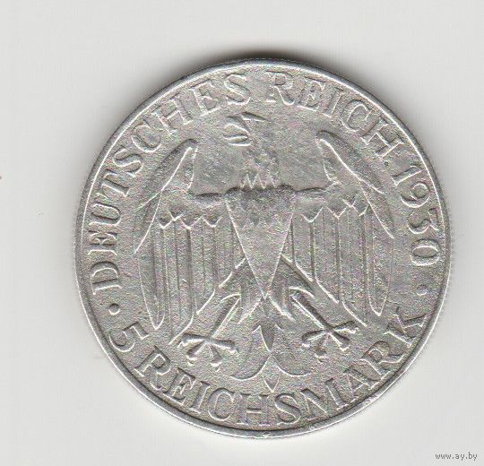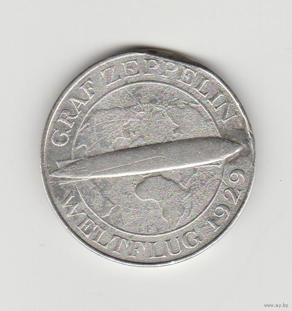 Монета 5 марок 1930 года. Веймарская республика. Граф Цеппелин. Серебро