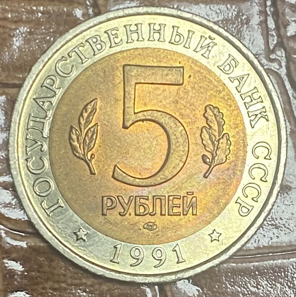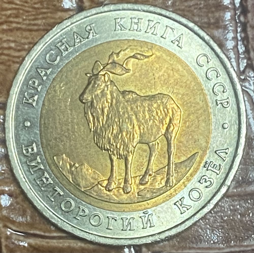 Монета 5 рублей, 1991 год, СССР. Винторогий козёл. "Красная книга"