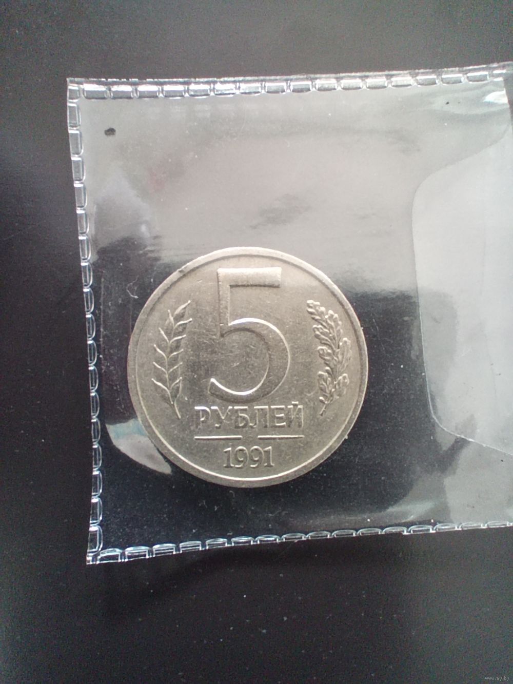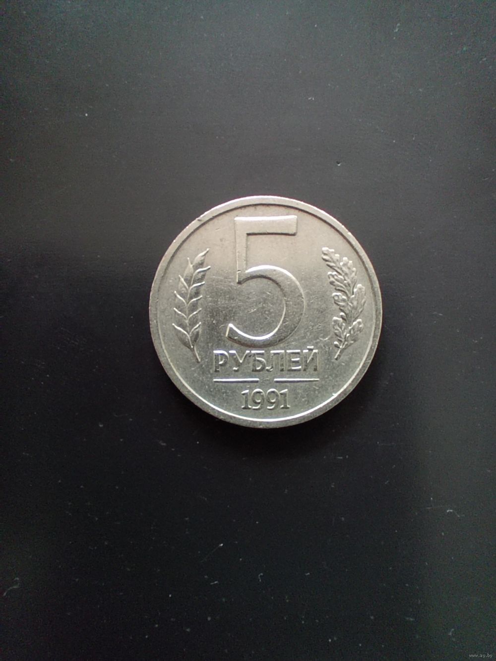 5 рублей 1991 год (ГКЧП). Не пропечатан монетный двор. При увеличении есть есле заметный слабый след. Монетный двор не установлен.