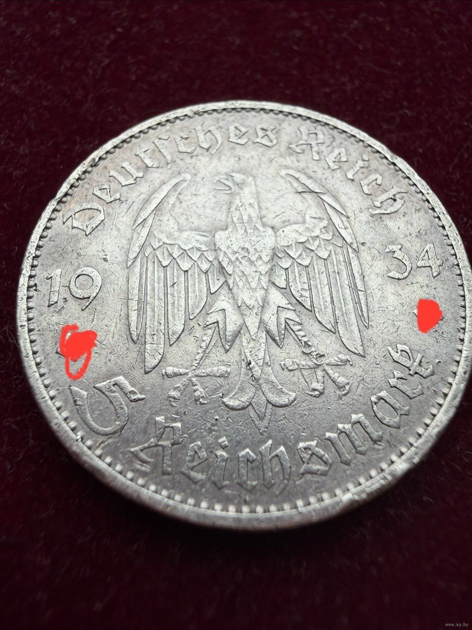 Монета. 5-ть Рейхсмарок 1934г "Гарнизонная церковь "