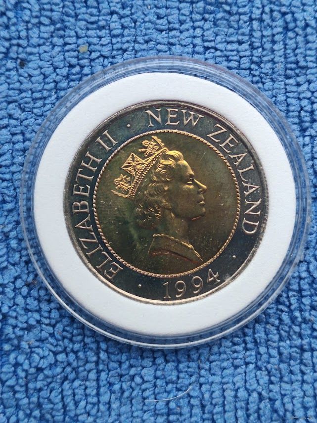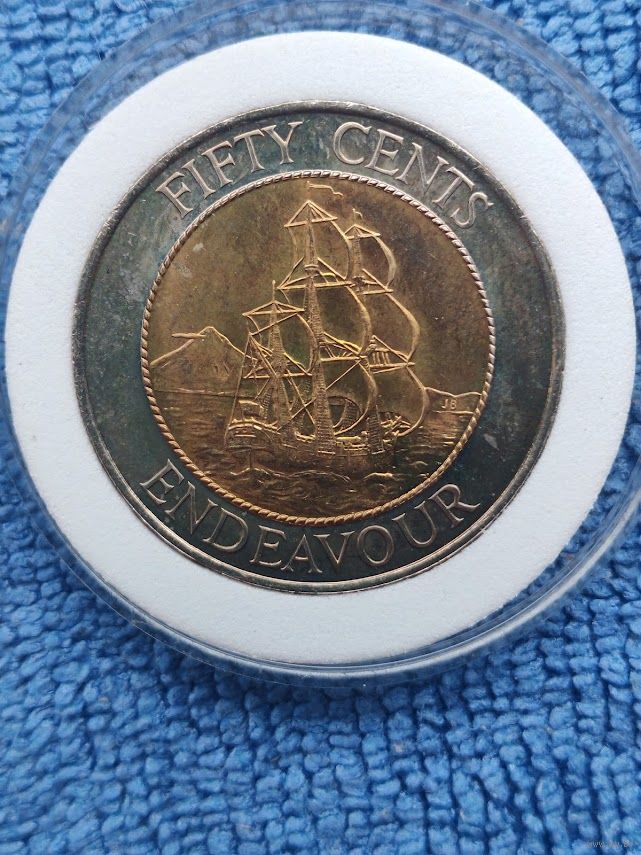 Очень красивая первая биметаллическая монета Новой Зеландии 50 центов 1994 год в капсуле.