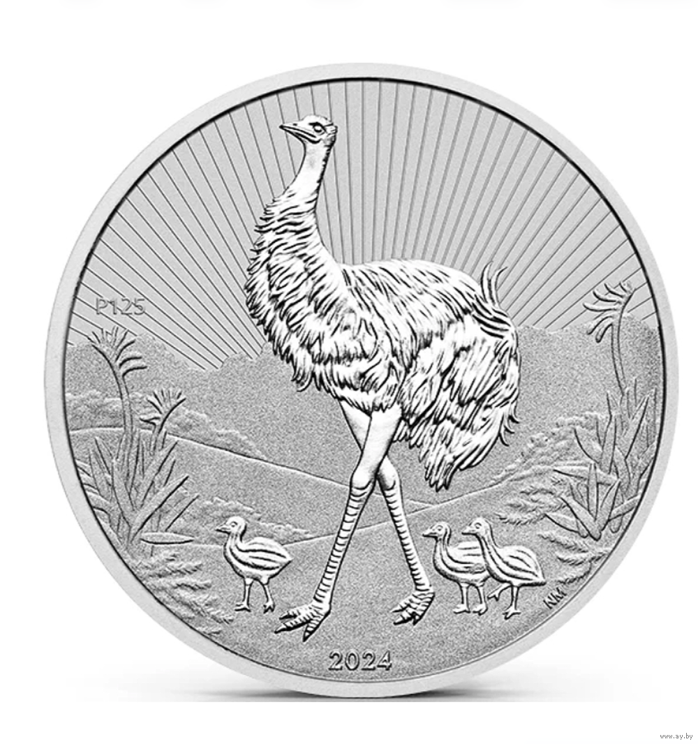 Следующее поколение: Эму-мать и детеныш эму 2 унции, серебро 2024 г. Австралийский Эму с ее детенышами. К самым известным и популярным животным Австралии относятся: эму, кенгуру, коала, кукабарра, вомбат, тасманский дьявол и динго. Монета является седьмой из серии The Next Generation. На всех монетах серии представлены и будут представлены виды животных из глубинки Австралии.