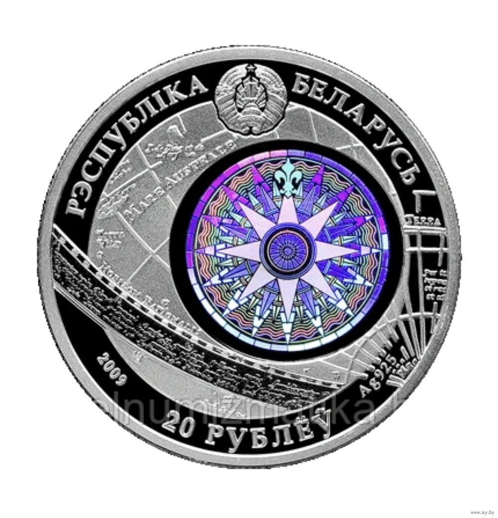 Аверс: вверху в центре — рельефное изображение Государственного герба Республики Беларусь и по кругу надпись: РЭСПУБЛIКА БЕЛАРУСЬ; в центре монет на фоне навигационной морской карты — стилизованное изображение розы ветров (на серебряной — с нанесенной голограммой); по кругу надписи: внизу номинал — 20 РУБЛЁЎ , слева от него указан год чеканки ( фирменный (товарный) знак Монетного двора Польши).