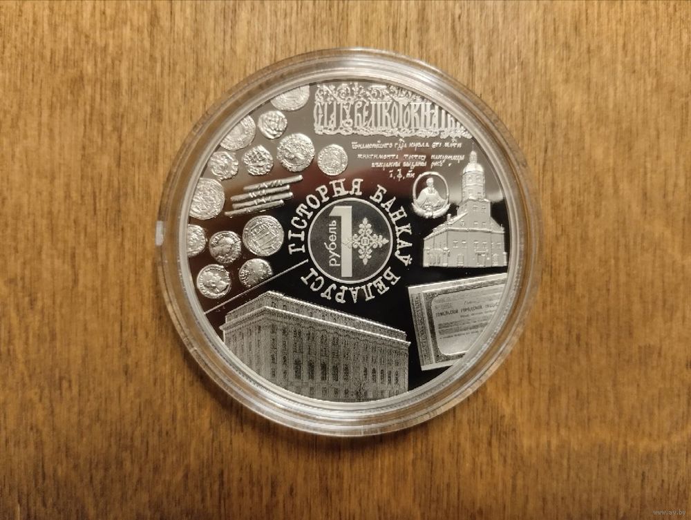 Монета "История Банков Беларуси" 1 рубль. Медно-никелевый сплав.
