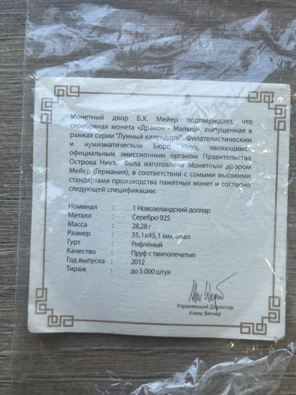 Это коллекционная монета номиналом 1 доллар Островов Ниуэ 2012 года выпуска из серии «Лунный календарь: Год дракона».