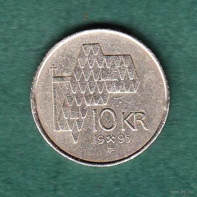 Монета Норвегия 10 крон 1995 года, состояние представлено на скане.