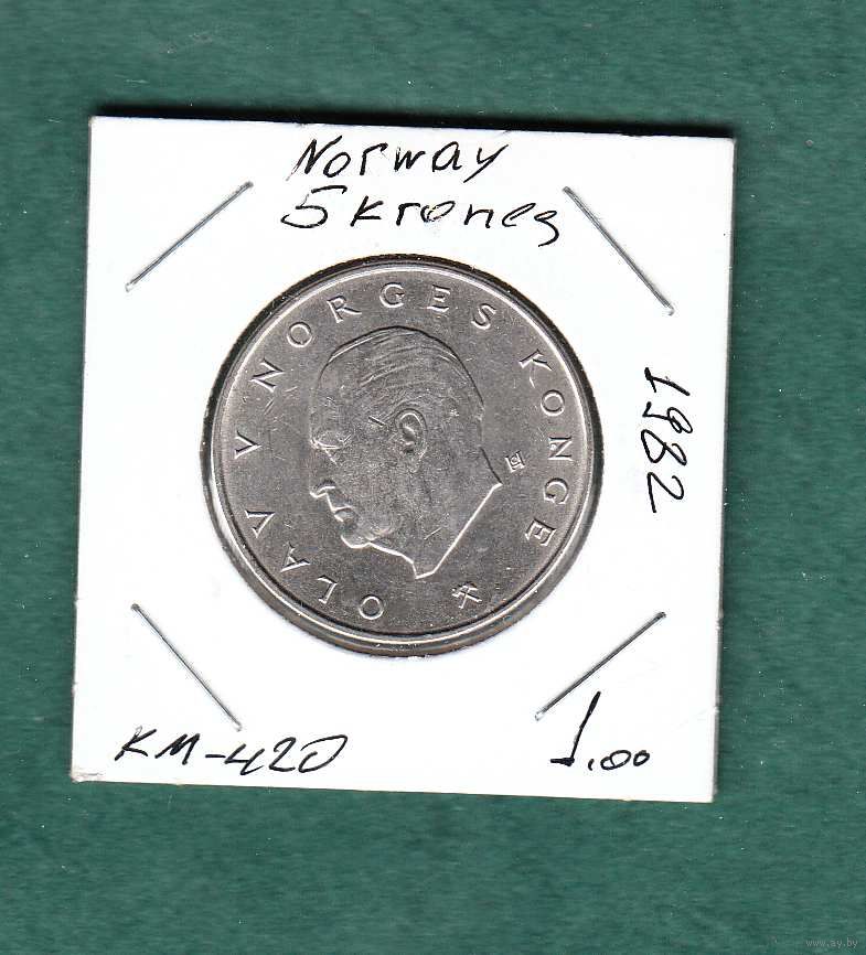 Монета Норвегия 5 крон 1982 года, состояние представлено на скане.