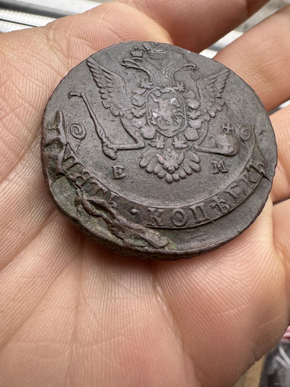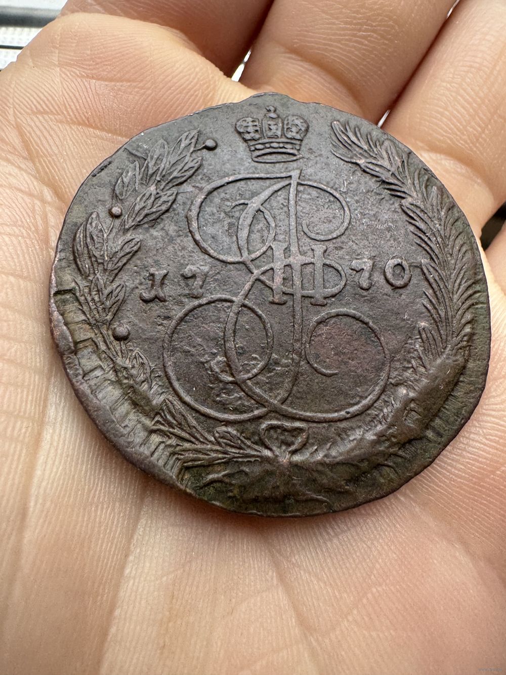 Монета. Пять копеек 1770г Екатерины Великой ЕМ
