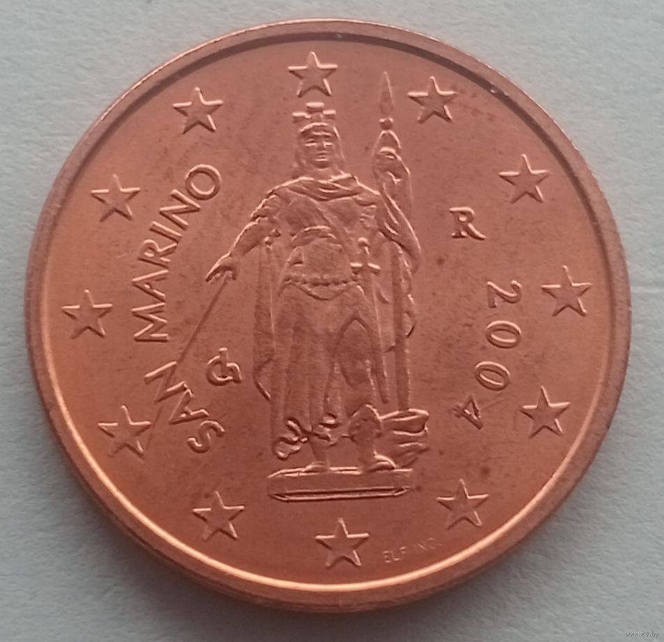 Монета Сан-Марино 2 евроцента 2004 года