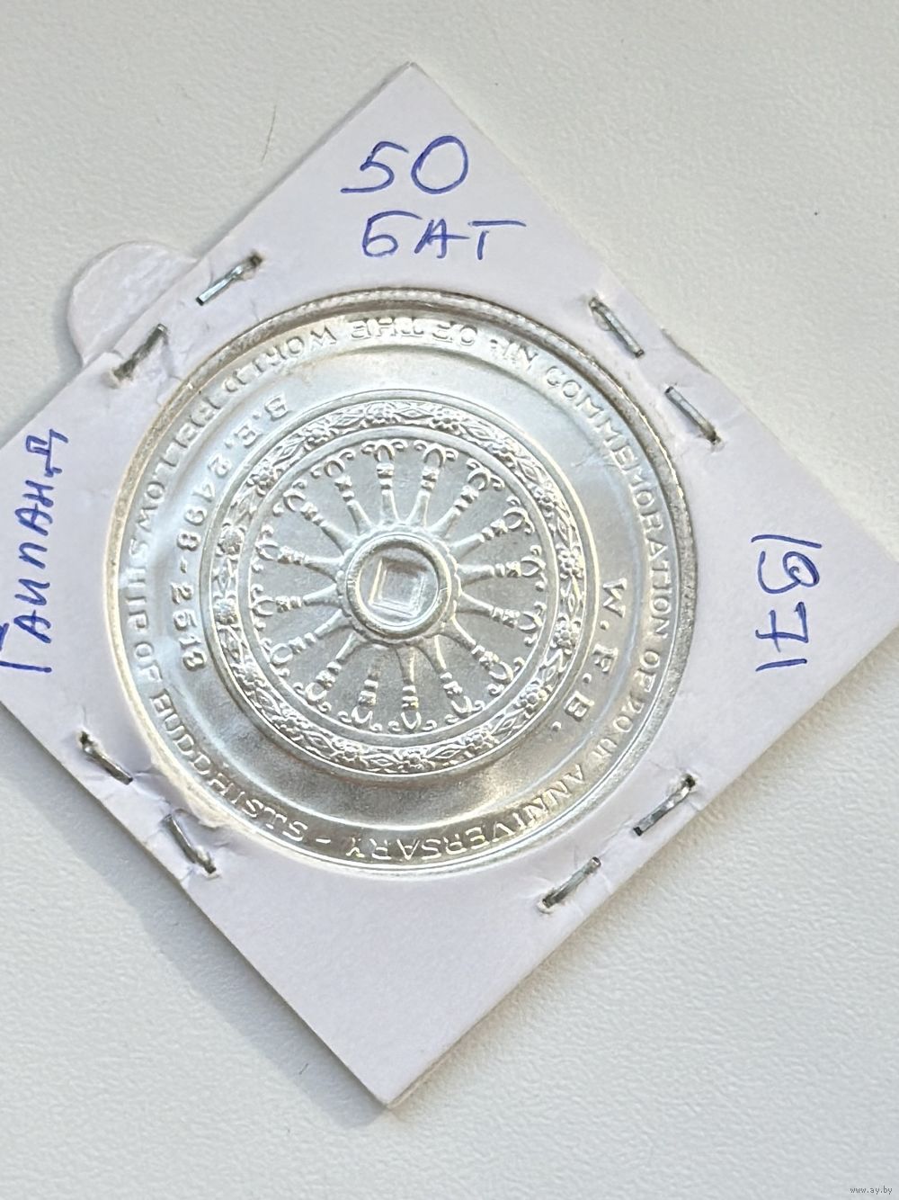 50 Бат Таиланд(20-летие Всемирного братства Будистов)1971г.Серебро 900 пробы 24.7 грамм