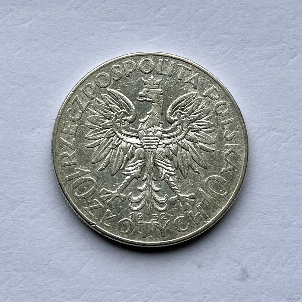 Монета СЕРЕБРО Польша 10 злотых 1932 год Ядвига ( знак м.д) ОТЛИЧНЫЕ