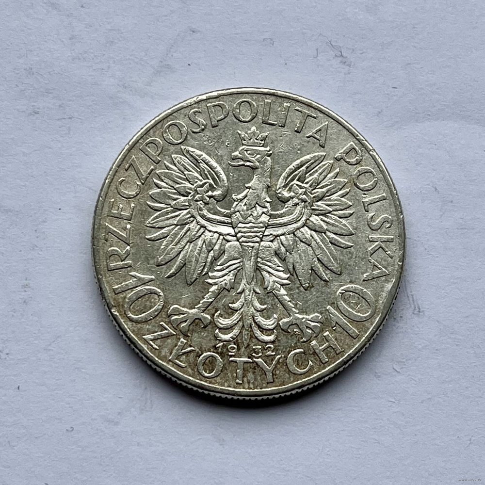 Монета СЕРЕБРО Польша 10 злотых 1932 год Ядвига (знак м.д) ОТЛИЧНЫЕ