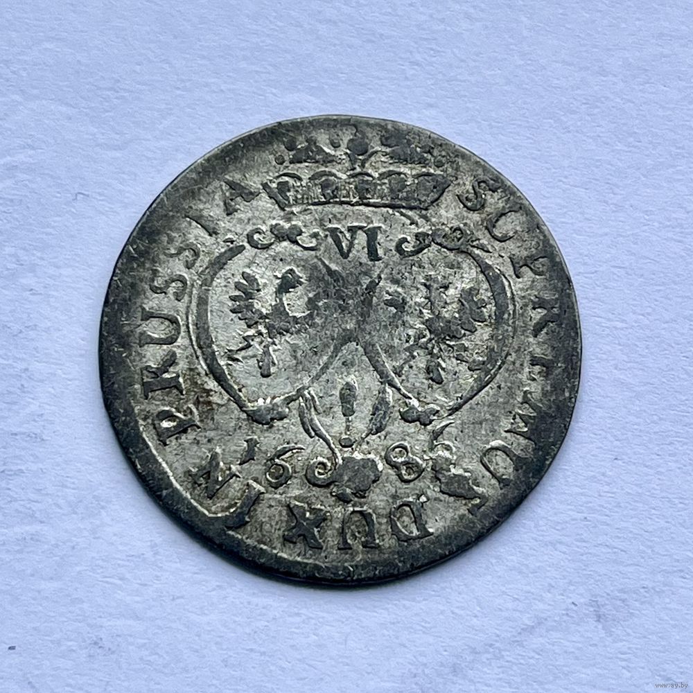 Монета СЕРЕБРО ПРУССИЯ шостак/ 6 грошей 1686 год ФРИДРИХ ВИЛЬГЕЛЬМ l ОТЛИЧНЫЙ