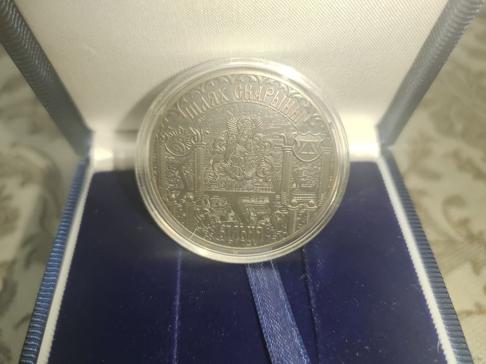 Монета продается с футляром. Футляр синего цвета, ложемент не по размеру монеты. Для хранения подойдёт, при транспортировке в закрытом футляре монета не перемещается, прижимается плотно. Состояние футляра отличное.