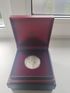 Слева по кругу надпись: СЛУЦКІЯ ПАЯСЫ. ТКАЦТВА; слева – изображение фигуры купца, символизирующего торговые связи города Слуцка, справа – декоративная композиция, состоящая из герба города Слуцка, ткача за станком, изготавливающего традиционные тканые пояса, и изображения города (как символа развитого центра мануфактурного производства).