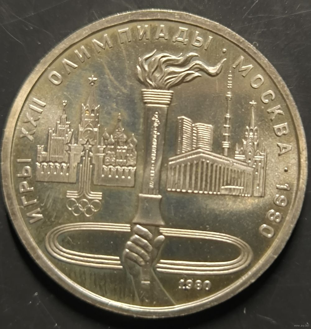 Монета СССР. Олимпиада в Москве. Олимпийский факел. Пруф.