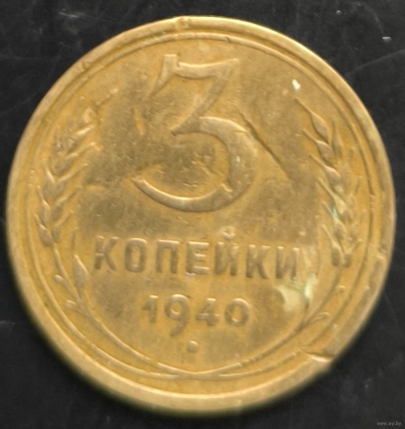 Монета СССР регулярного чекана. 3 коп 1940г.