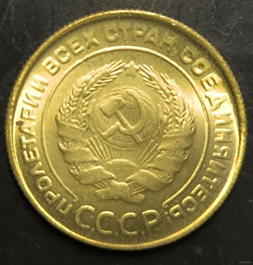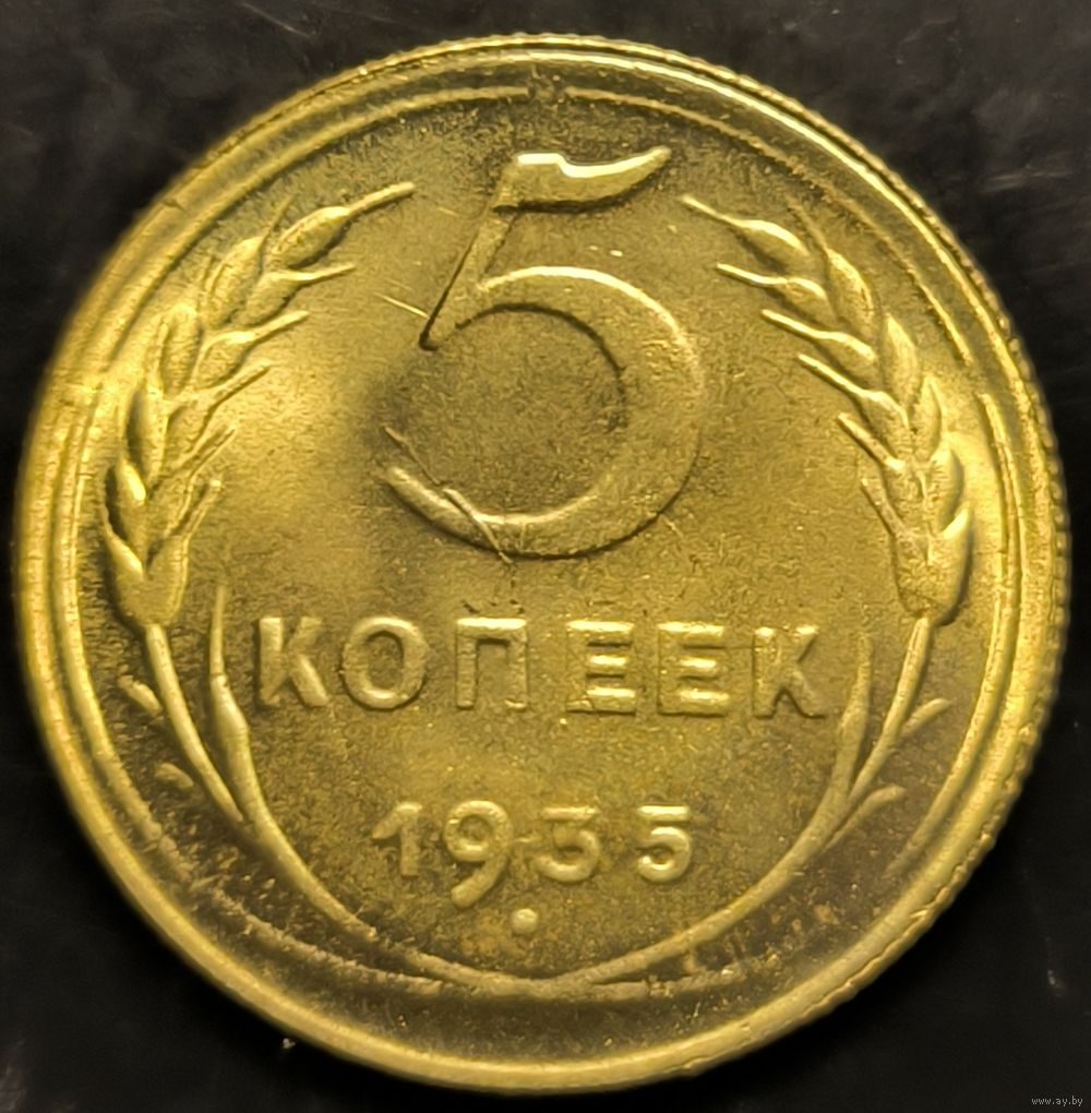 Монета СССР регулярного чекана. 5 коп 1935г. Желтый металл. Копия