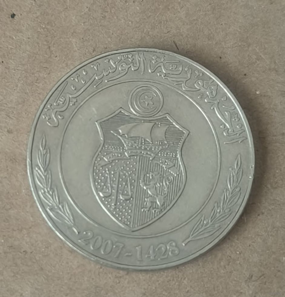 Монета Тунис. 1 динар 2007 год
