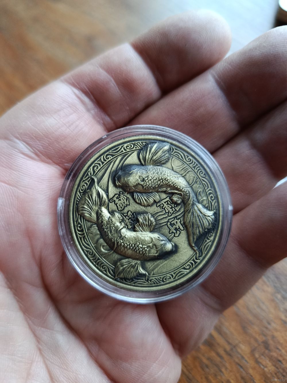 Сувенирная монета Рыбы, на удачу, 40*3мм в капсуле. Вышлю почтой при необходимости
