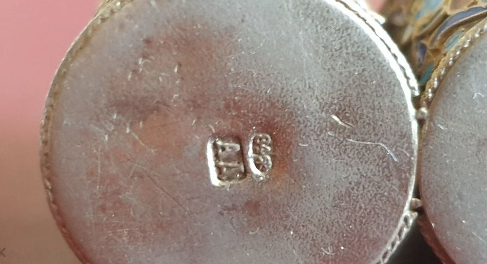 Монетница. Серебро, проба 84. Эмаль без сколов. Именник и вес см. фото. Длина 6,5 см, высота 2,7 см. Состояние отличное. Клейма пробиты на всех частях монетницы. Предназначена для 10-, 15- и 20-копеечных монет царской чеканки.