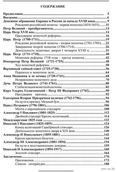 В книге исследуется монетное дело в России со времени его зарождения при Петре I до конца правления Николая II. Подробно рассматриваются периоды царствования каждого правителя, дается развернутое описание и анализ причин, которые так или иначе влияли на монетное дело, а также исследуется обратное влияние изменений в денежном обращении на различные стороны общественной жизни.