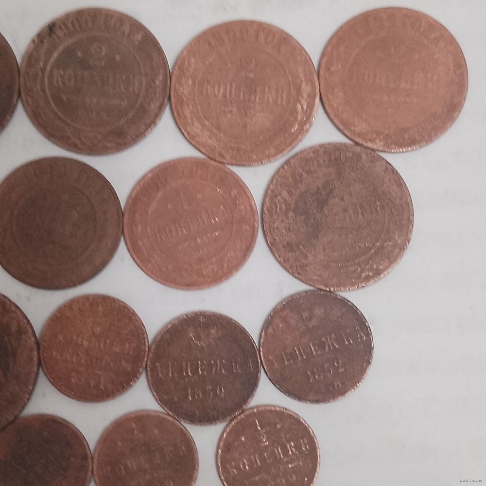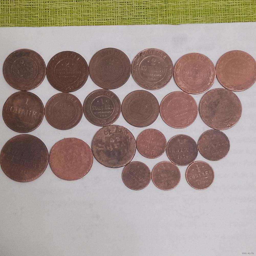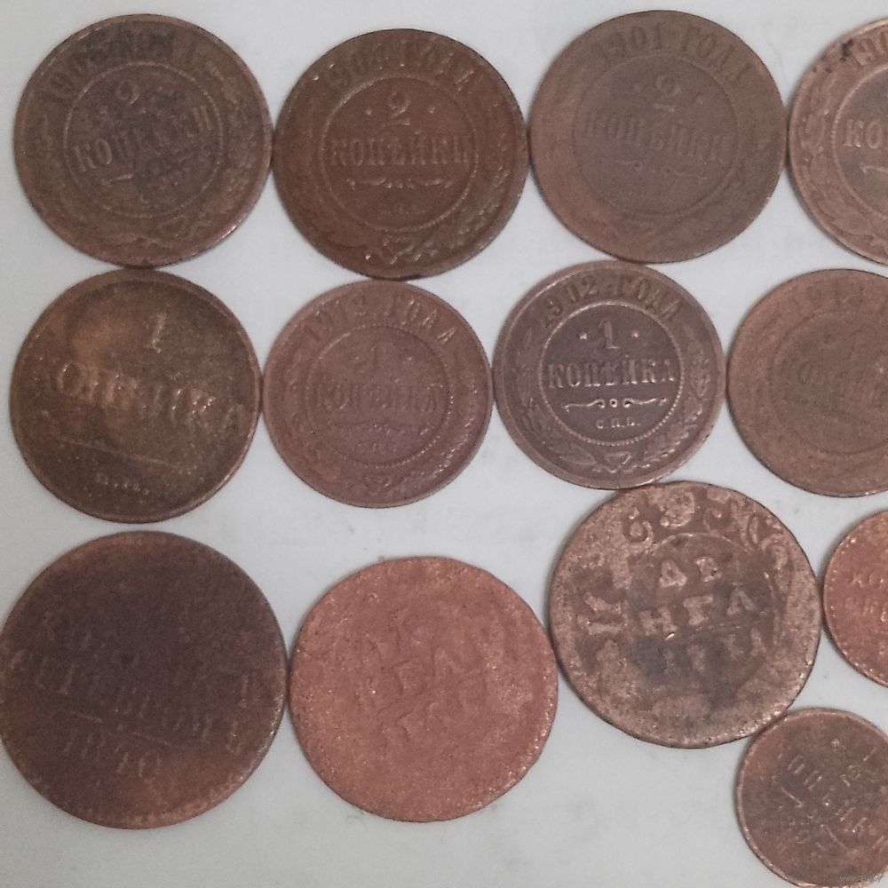 1 к(1913, 12,02,00), 2 к(1904, 06,00,01,1899 2- шт) , 1 к серебром 1840,1 к 1832 вм, 2 к 1887,1/4 к 1841,1/2 к 1899,1909,1897, денежка 1850 ем, 1852, деньга 1731,1751