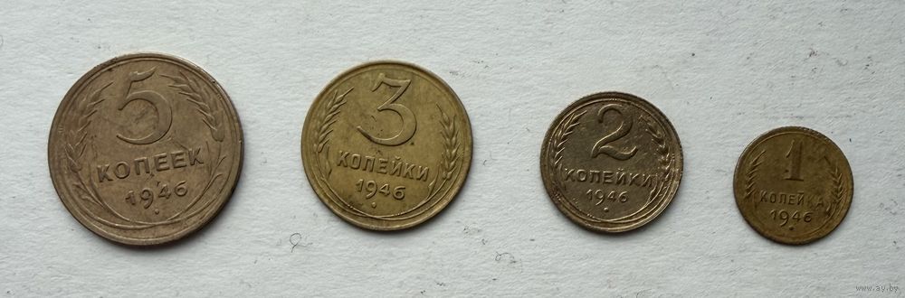 Монеты 1, 2, 3, 5 копеек 1946 года