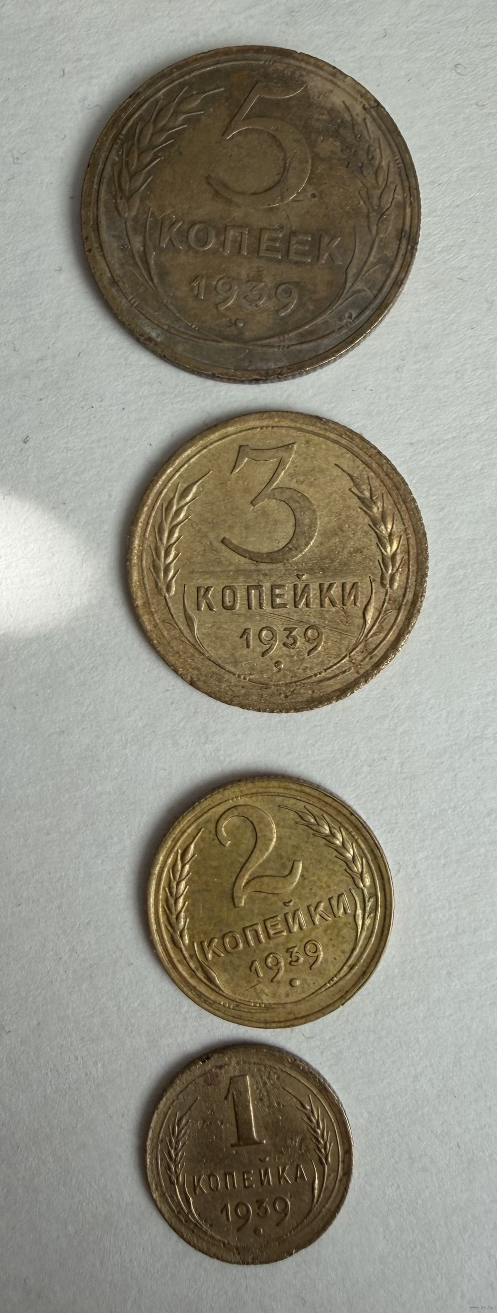 Монеты 1,2,3,5 копейки 1939 года
