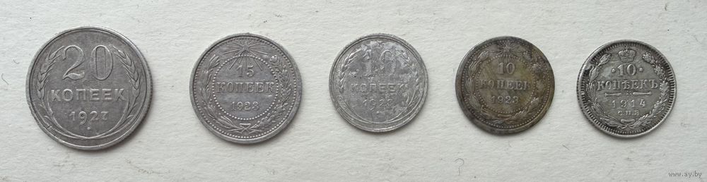 Монеты 10, 15, 20 копеек 1914, 1923, 1927 год - сборный лот
