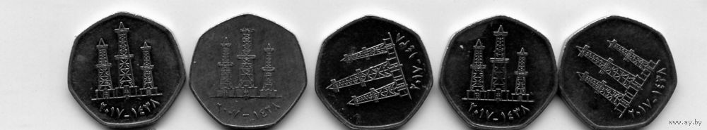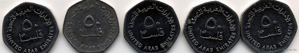 МОНЕТЫ , 50 филсов, ОАЭ , 5 монет по 0,70коп., шт