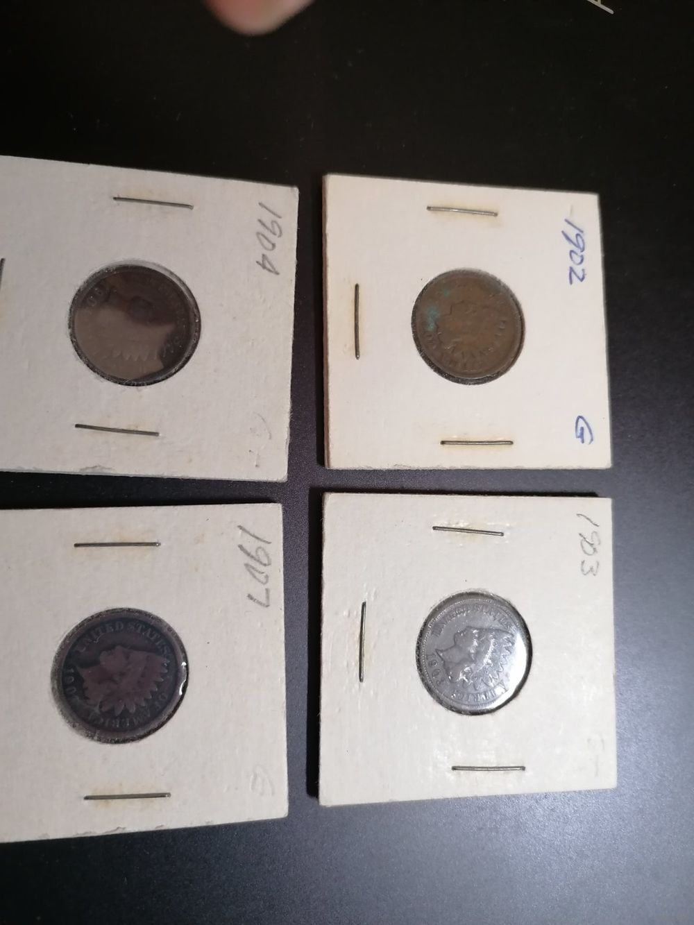 Один цент, США. 4 монеты в картонной защите: 1902, 1903, 1904 и 1907 г. г.