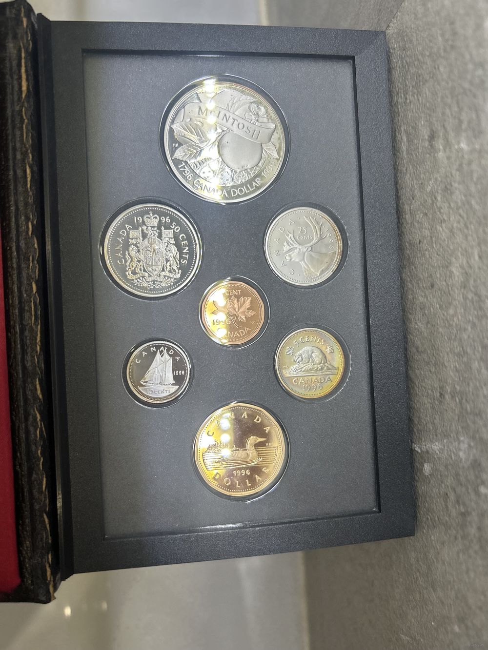 Начиная с 1996 года, монеты достоинством 5, 10, 25 и 50 центов чеканились из стерлингового серебра. Все остальные характеристики остались такими же, как и у старых наборов «Престиж/пруф». Джон Макинтош прибыл в Канаду в 1796 году и поселился в Онтарио. Выпущен в честь создателя самого важного канадского сорта яблок.