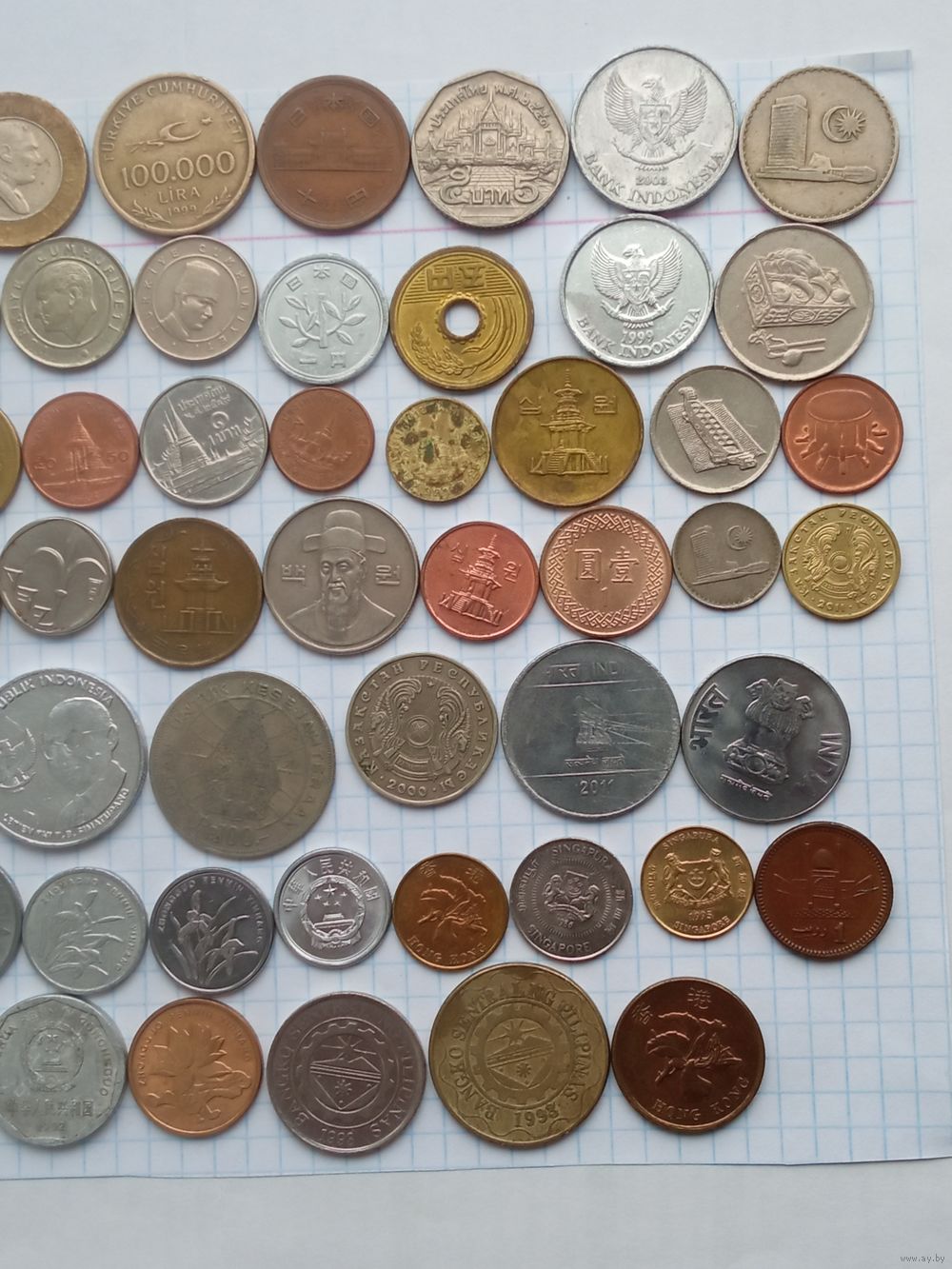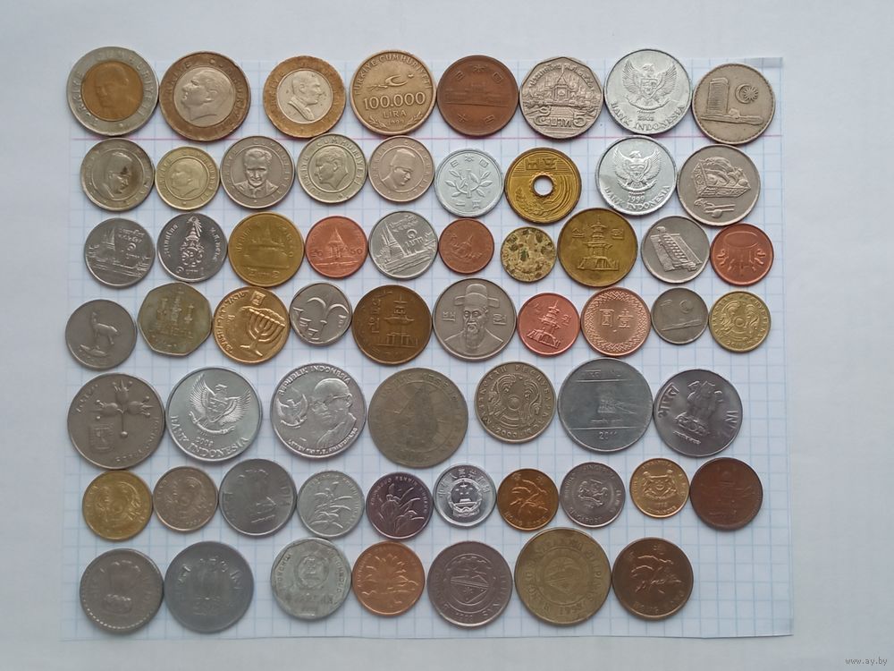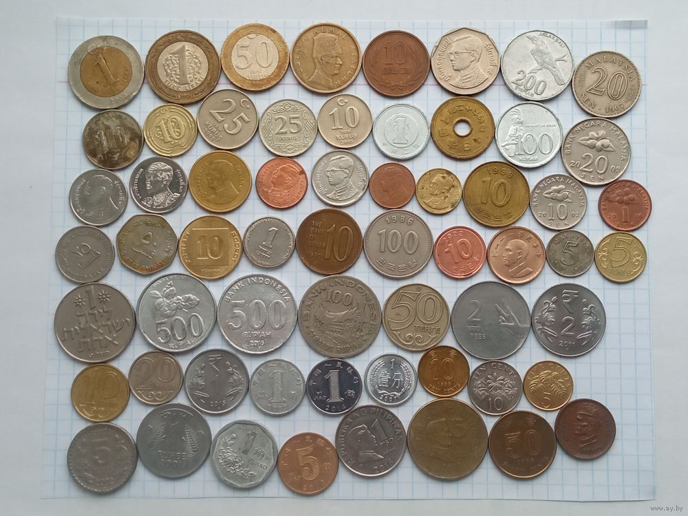 Монеты Азия , 61 штука , без повторов .