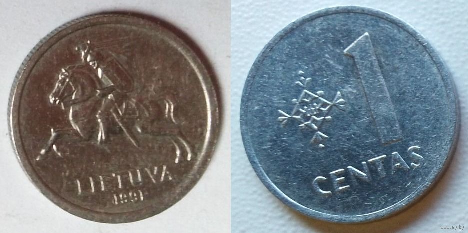 Литва - 1 цент - 1991 (2 шт)