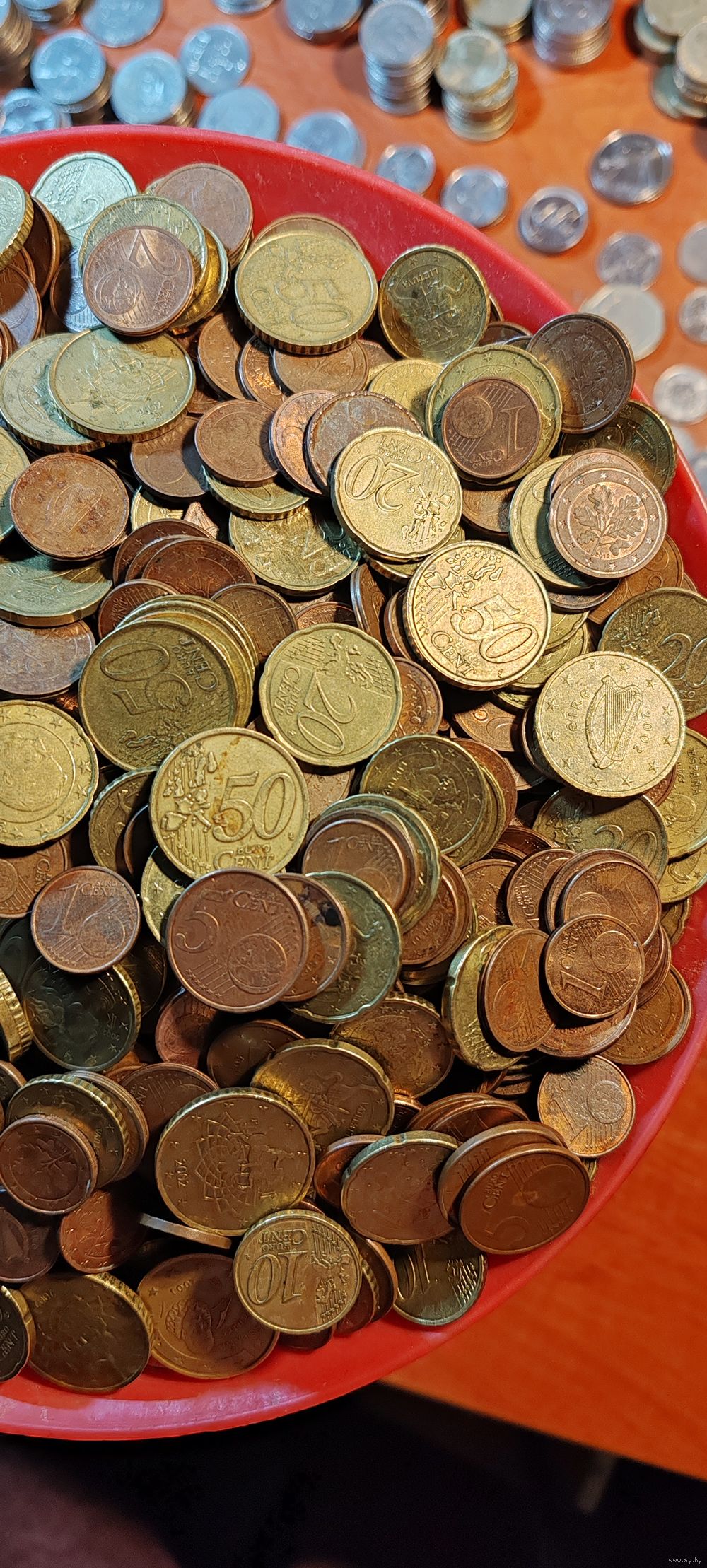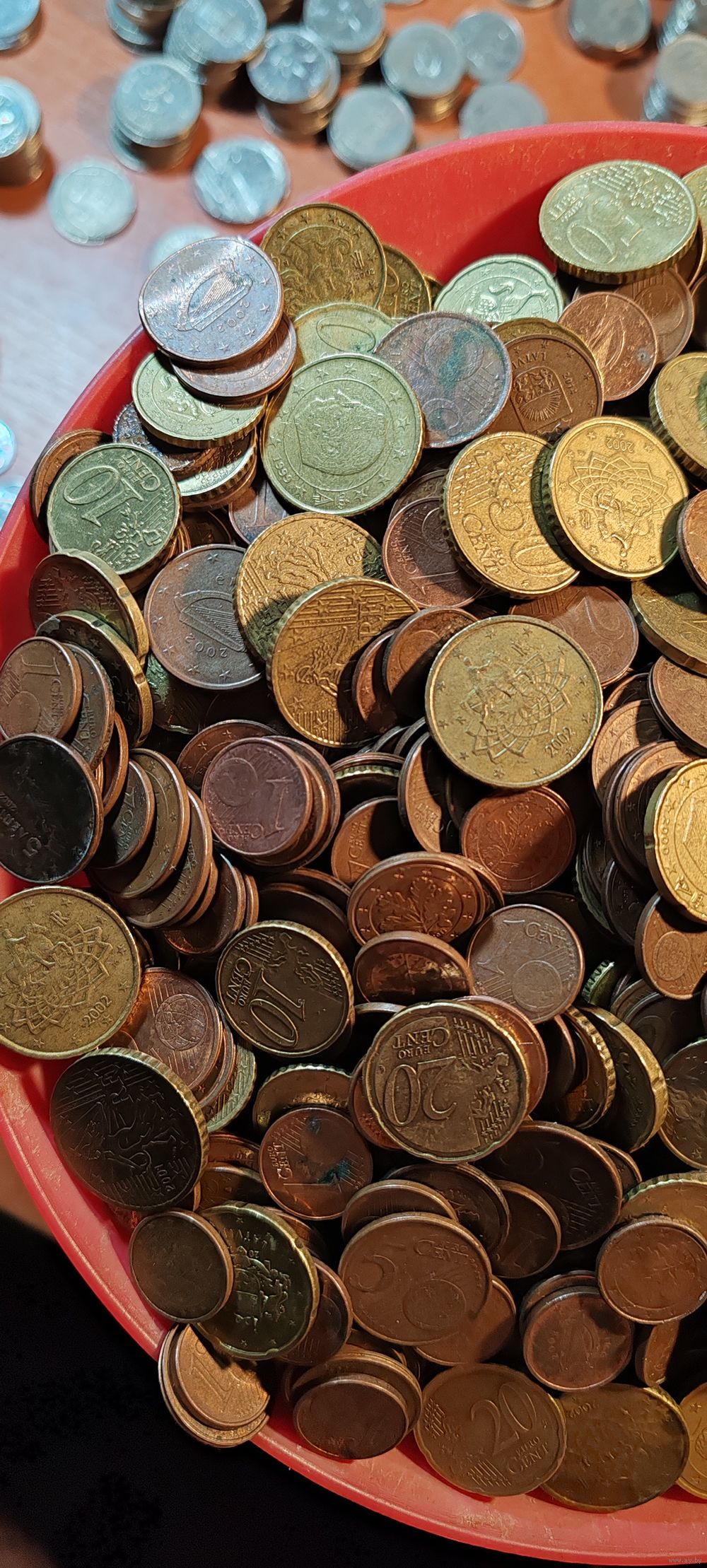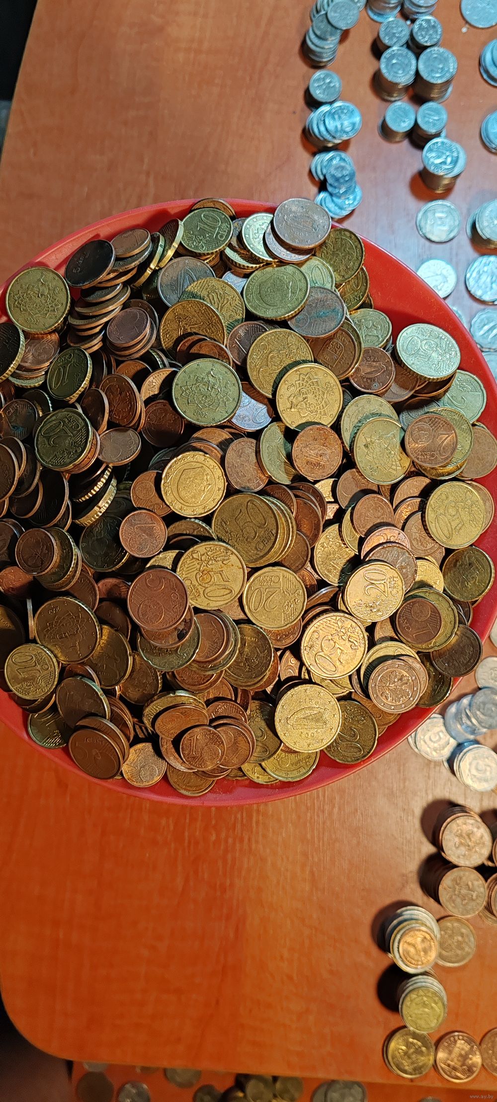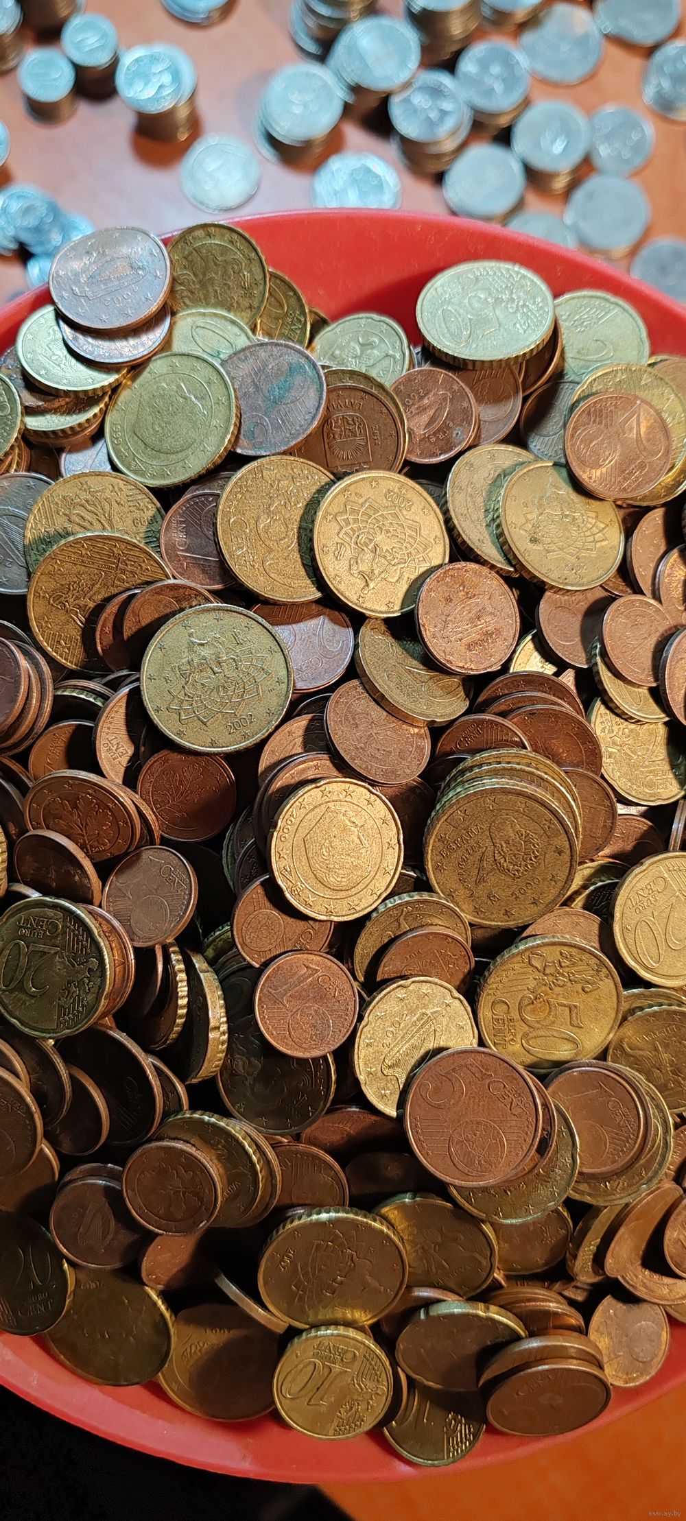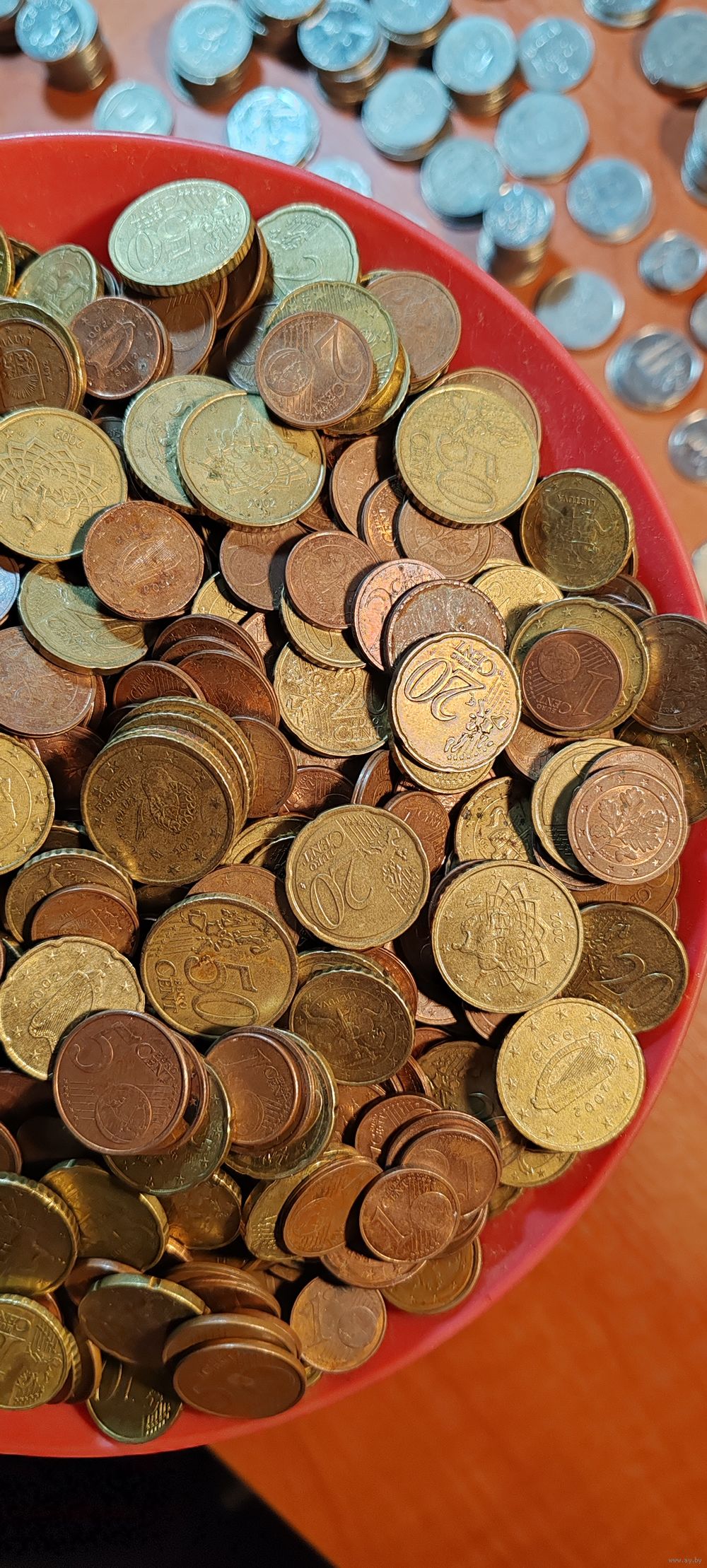 4 кг евроцентов номинал от 0.01 до 0.50 разные страны, можно собрать хорошую погодовку. Если дорого пишите свои предложения, всегда можно договориться. Так же могу в нагрузку предложить 1 кг монет номиналом 1 евро и 2 евро )))