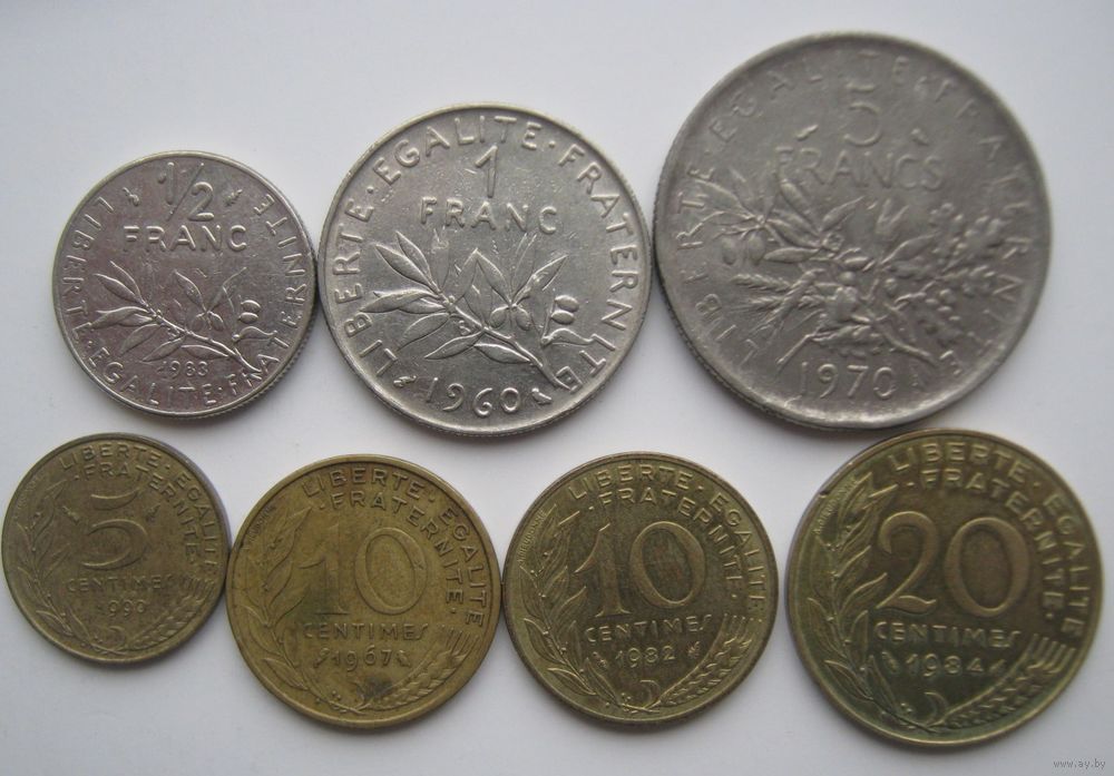 Монеты Франции ( 1960-1990 гг )-7 шт.