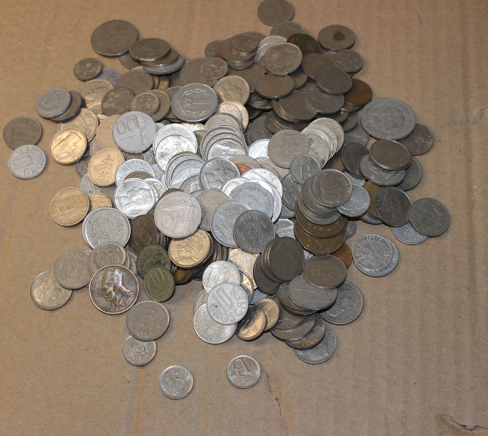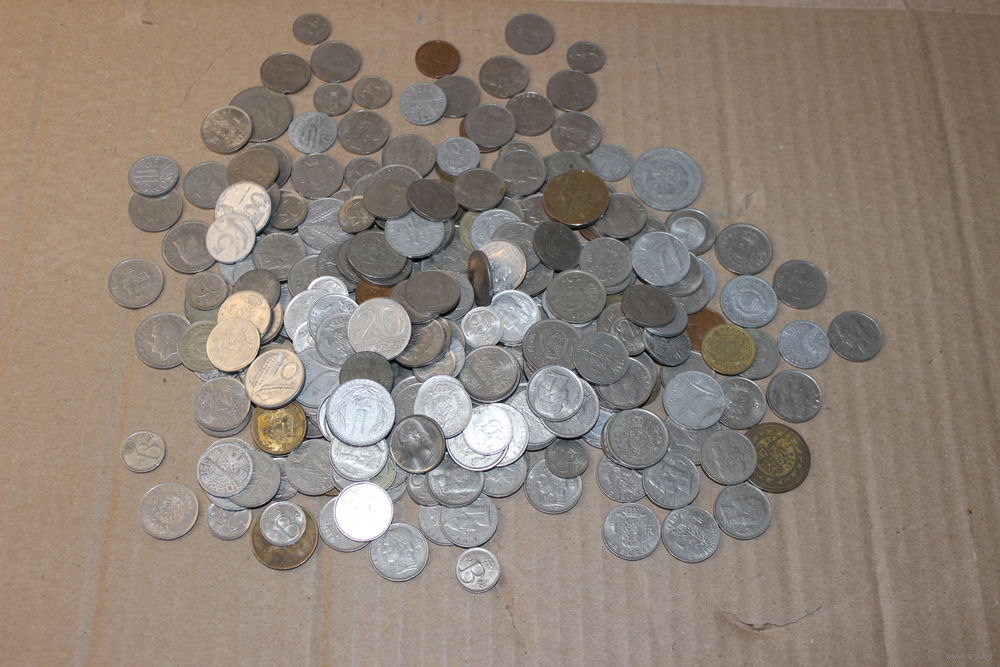 Монеты иностранные 1 кг с рубля . Больше килограмма.Точнее 1050г.