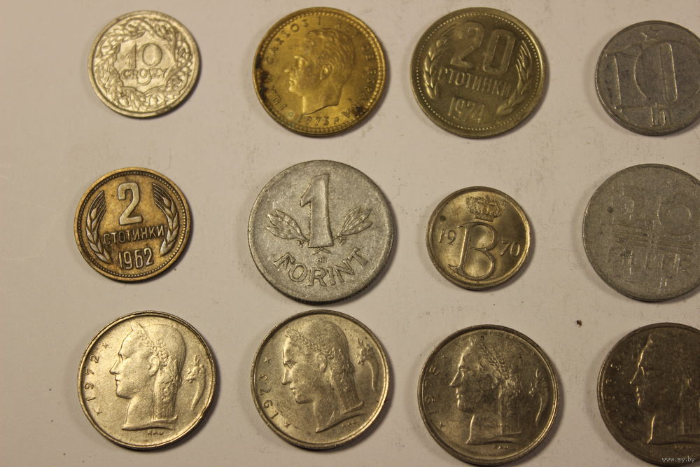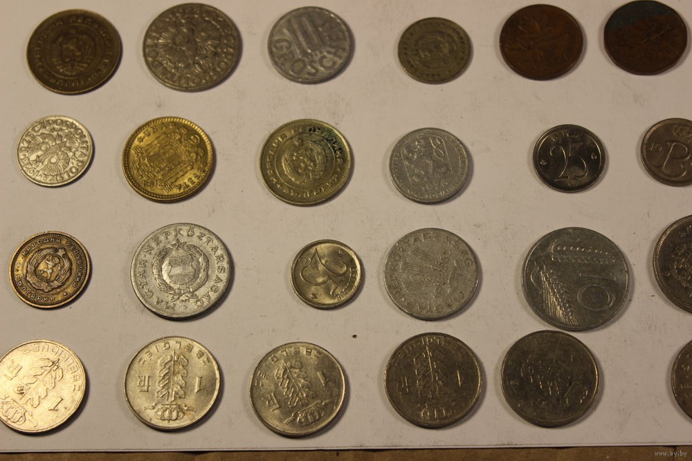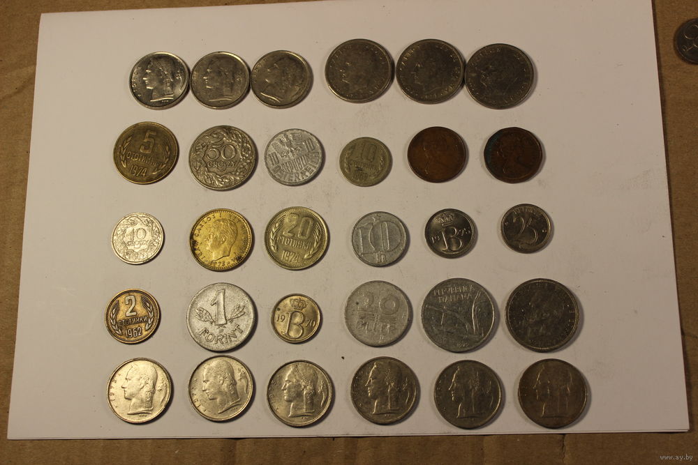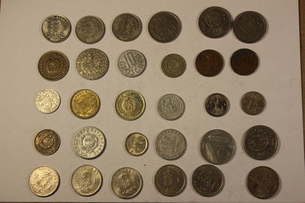 Монеты иностранные стран мира с 1 рубля 30 штук.