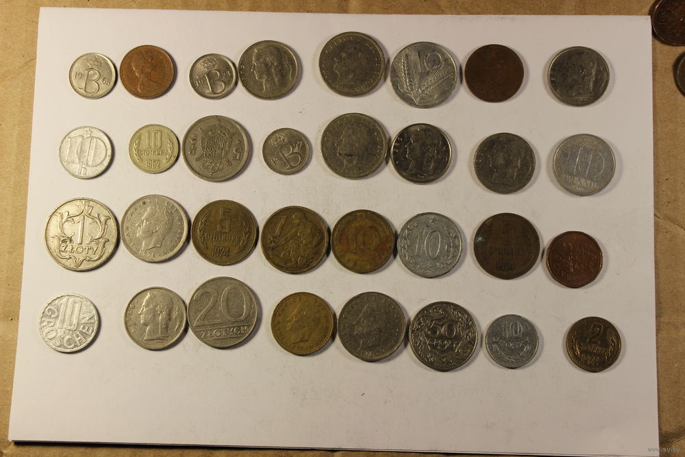 Монеты иностранные стран мира с 1 рубля 32 шт.