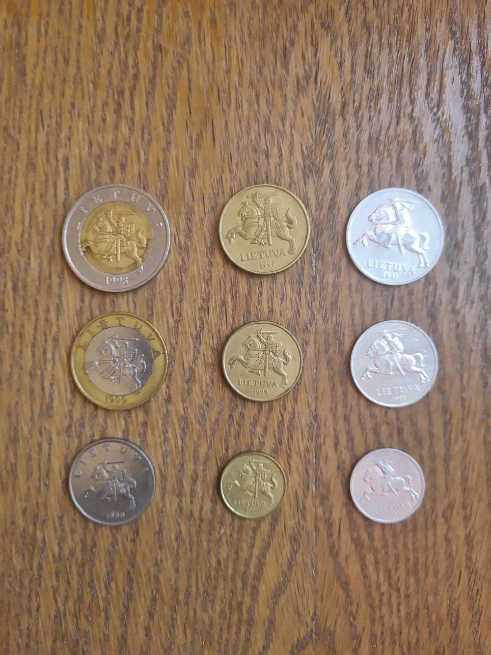 Монеты Литвы. 5, 2 и 1 лит. 50, 20, 10, 5, 2, 1 центр. Монеты до введения еврозоны.
