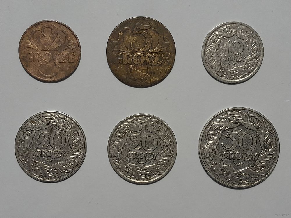 Монеты Польши, 6 штук, 1923 и 1934 годы. Одним лотом. Состояние на фото. Стандартный аукцион без минимальной цены.