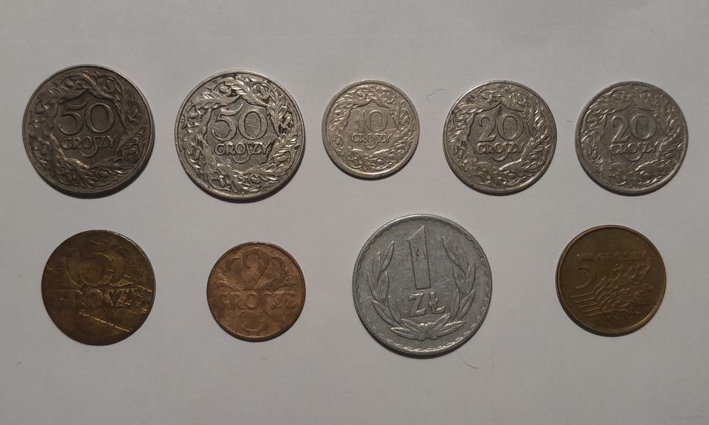 Монеты Польши 9 штук одним лотом. Состояние на фото. Без минимальной цены.