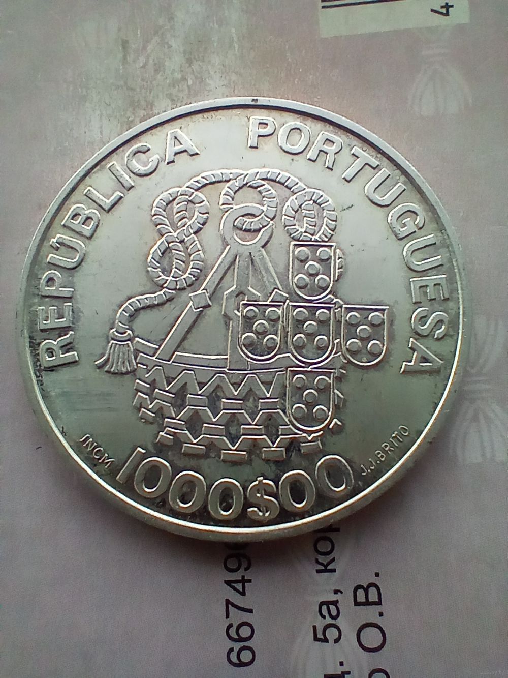 Монеты.Португалия.1000 эскудо 1998 года .500 лет церкви Мизерикордия. Серебро 27,0 г.