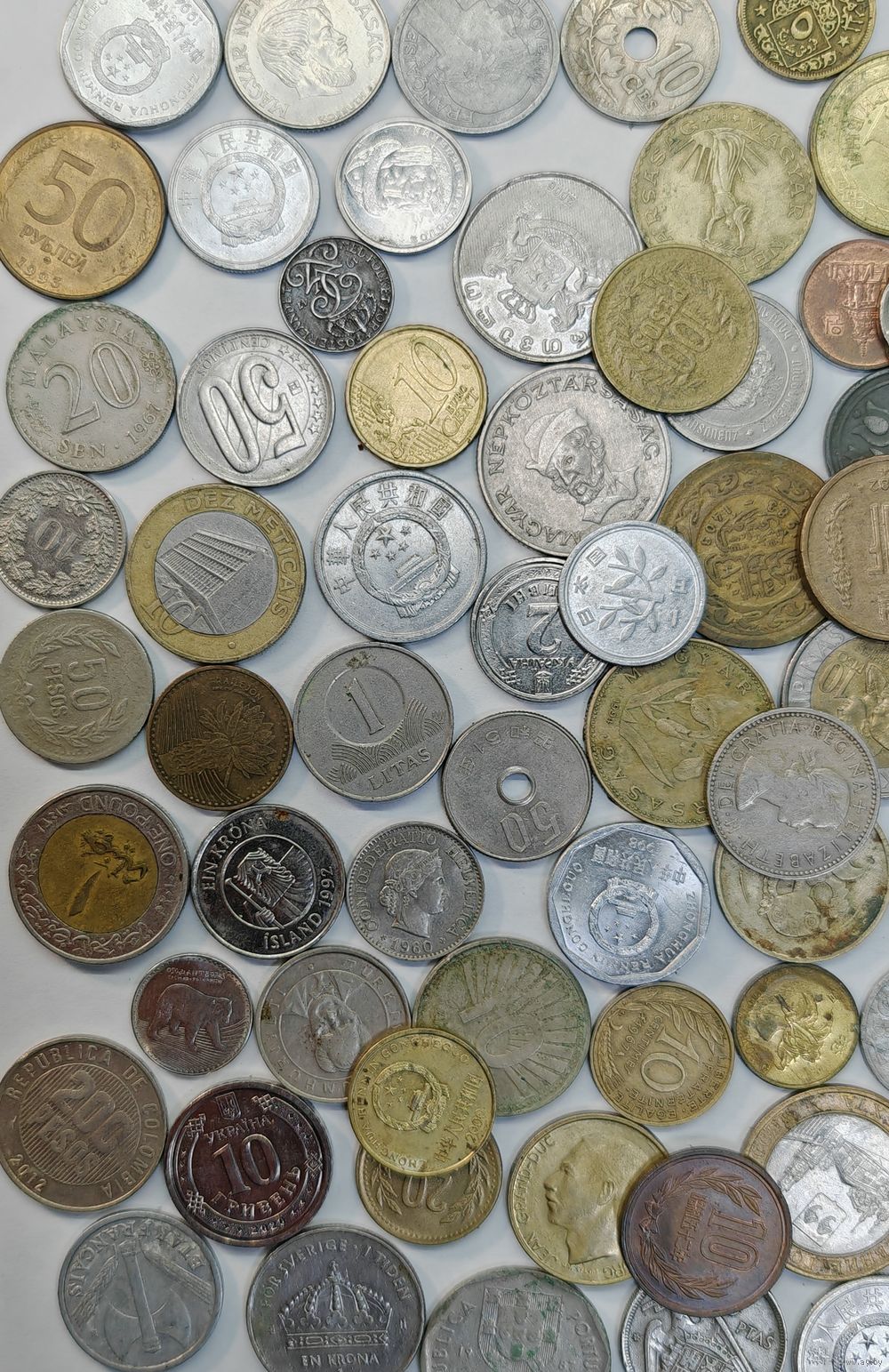 Монеты разных стран. Одним лотом 120 шт. С рубля