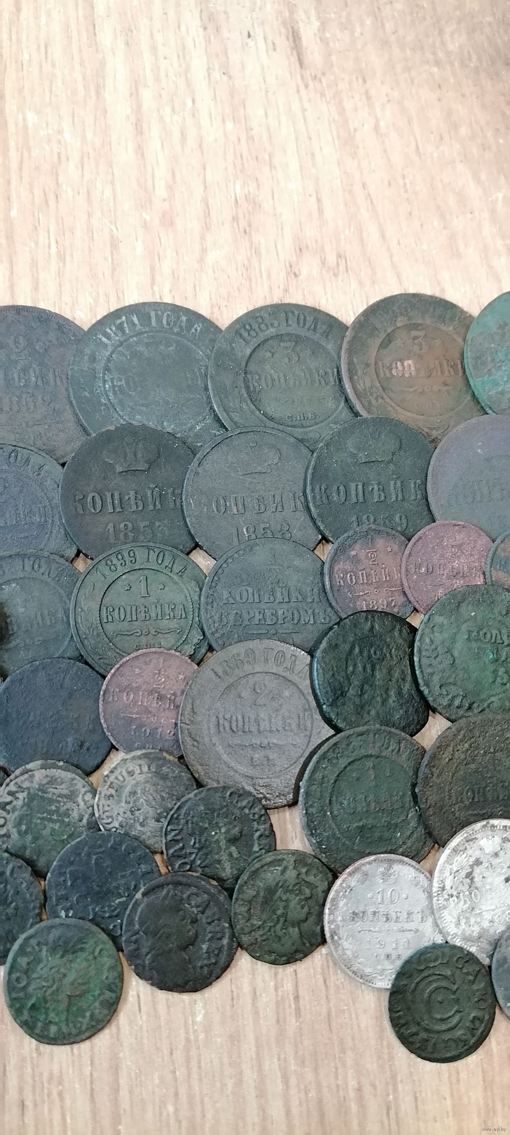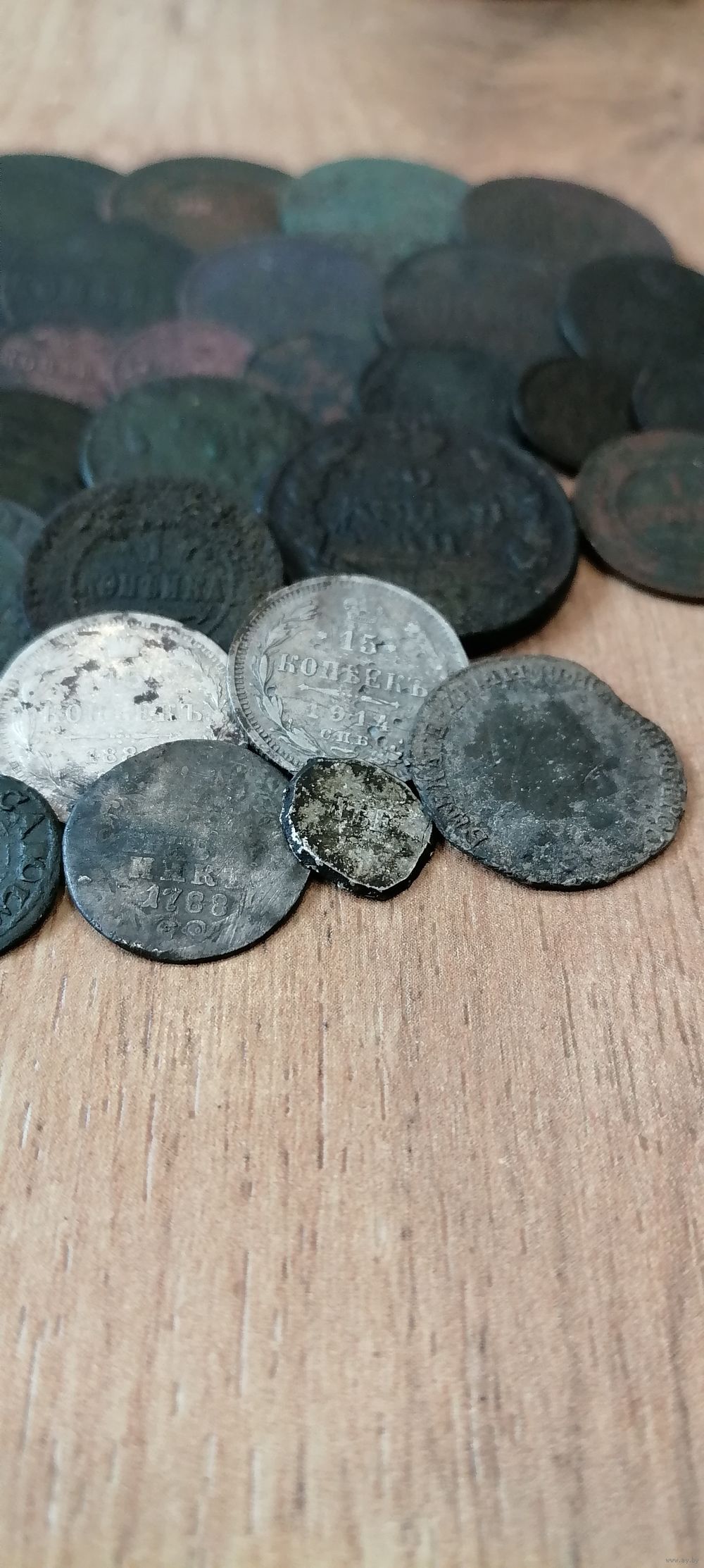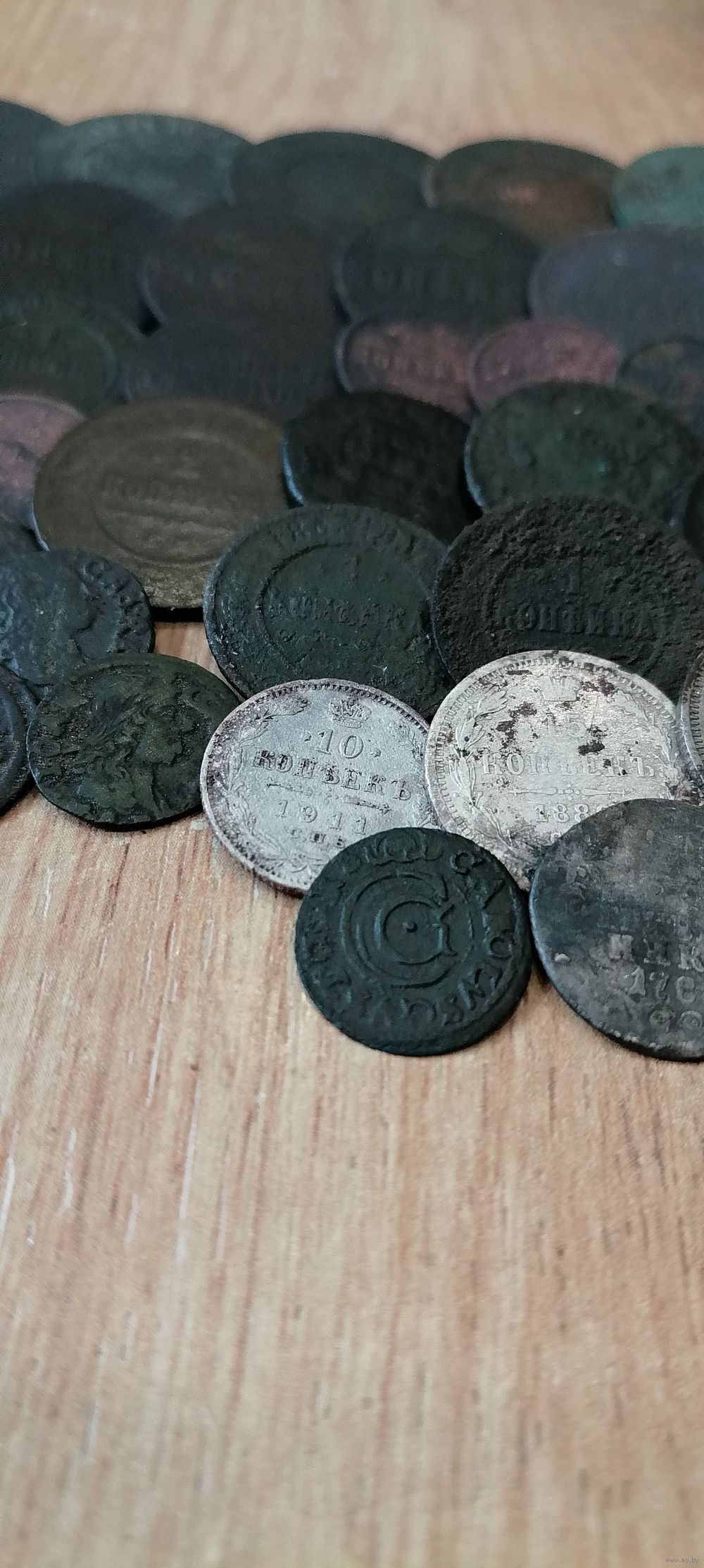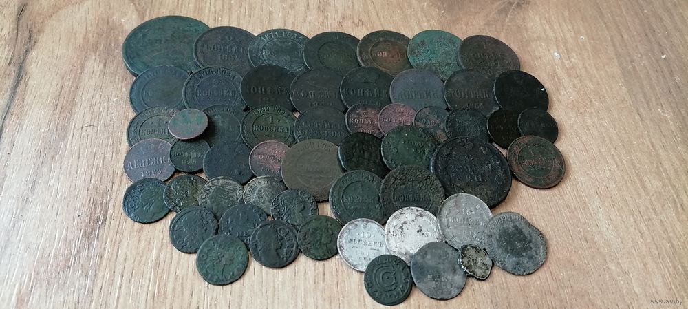 Есть редкий, 2 маленьких полушки Николая 1, нужно чистить, из серебра
